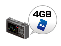 减少使用通道数、可以提高采样速度至10ms。 | 4GB存储器可安心进行长时间的测量
